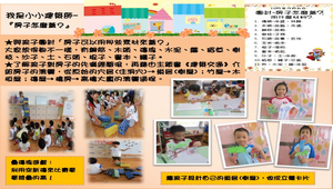 本校為鑽石級綠建築學園,因此幼兒園的校本課程以"綠生活"為基石,各班經由師生新舊經驗互動的建構,發展出各具特色、與綠生活相關的課程方案。此為海豚班發展出的方案歷程記錄。