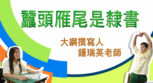 本單元首先列舉若干字例,對比篆字與隸書的差異,以說明從篆至隸的演變;其次介紹隸書「蠶頭雁尾」的筆畫特徵;接著由吳啟禎老師示範各種筆畫寫法,講解結構布局;最後介紹幾種適合中學生學習的隸書書帖,並引導學生欣賞各家書體的不同風格。