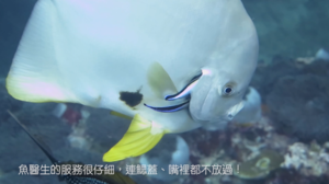 宛如魚醫生般的裂唇魚,在珊瑚礁區設立了清潔站,專治各式魚類身上的寄生蟲。凡有需要的魚類都會來此尋求裂唇魚的幫助,將身上、甚至口腔及腮蓋內的寄生蟲一網打盡!