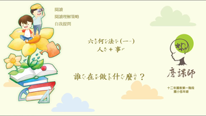 透過簡單的例句,讓低年級小朋友認識六何法中的「何人」及「何事」,並學習從國語課文中分析出什麼人。以及各個人物所做的事情是什麼。經過從句子和故事中分析出「人+事」的練習,培養學生對於事實型自我提問策略的理解能力。