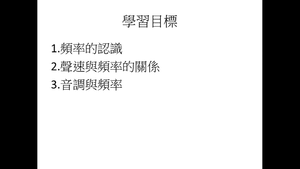 1.頻率的認識。rn2.聲速與頻率的關係。rn3.音調與頻率。rn