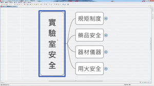 以心智圖及影像說明實驗室安全守則,並做「用火安全」、「教師示範實驗」。