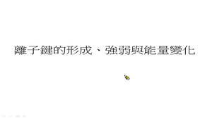 一.離子鍵的定義rn二離子鍵的特性rn三.離子晶體的溶解熱rn四.離子鍵的強弱與熔沸點的關係rn五.離子晶體的生成熱rn