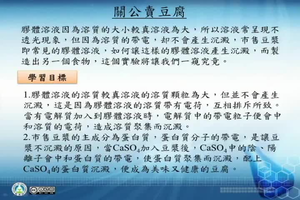 膠體溶液因為溶質的大小較真溶液為大,所以溶液常呈現不透光現象,但因為溶質的帶電,却不會產生沉澱,市售豆漿即常見的膠體溶液,如何讓這樣的膠體溶液產生沉澱,而製造出另一個食物,這個實驗將讓我們一窺究竟。