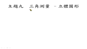 各位同學大家好,今天我們要介紹的是下一個主題。三角測量 –立體圖形。學習完三角函數的性質,我們現在要透過三角函數的性質來解決應用問題。首先,我們先來觀看立體圖形。