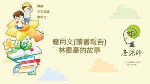 讀書心得,是應用文中的一種類型,學生在撰寫讀書心得時往往需要使用到固定的格式寫作,是以認識讀書心得報告的格式寫作成為當務之急。讀書心得報告格式可分兩種:大綱式與分段式,「大綱式」常以學習單的形式出現,具有引導書寫的功用,由於提示較多,較易上手,是以在中年級段教授;「分段式」則需要將rn書籍的基本資料分散至字裡行間,比較困難,是以安排在高年級段教授。rn本影片先說明大綱式讀書報告的格式,分為三大部分:圖書基本資料、內容簡介、讀後心得,再以《林書豪的故事:NBA豪小子》的書影進行引導,告訴學生讀書心得的前兩大部分其實就是「重點摘要」與「精華的濃縮」,需要讓人不必讀完這本書就能認識書中所言,接著引導學生讀書心得報告的重點在於「讀後心得」,若能夠以自己的話將書中人物的精神或道理闡述明白,本篇讀書心得報告才有意義。rn