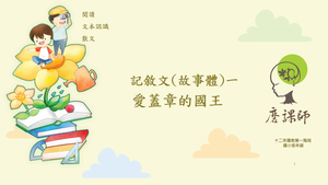 (一) 設計理念:rn1. 故事有角色、背景和情節三要素。角色指的是故事中會表達想法的人物或動物,背景指的是故事發生的時間或地點,情節則是故事主角所遇到的問題與解決過程。rn2. 故事都會有起因、經過和結果,引導學習者能找出故事起因、經過與結果。rn3. 藉由「愛蓋章的國王」這篇故事,運用問思教學,引導學習者認識故事的三要素和結構。rn(二) 預期效益rn 透過影片的問思教學與具體操作,使學習者能認識形成故事的三要素和故事 rn 結構。