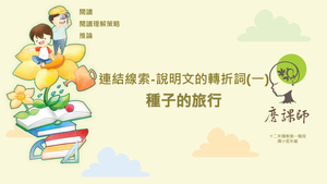 以【種子的旅行】這篇說明文的文章,來引導學生了解轉折詞的用法,理解轉折詞前後文相反、轉折的意思,進而增進閱讀理解,影片中有具體的步驟來引導學生。