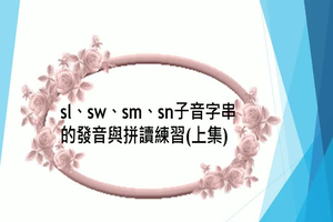 透過先混合子音字串的音素,再進行子音字串與韻腳的混音方式,引導學生學會子音字串sl、sw的發音。為了幫助無法立即進行子音字串和韻腳混音的學生,另外教導及示範如何先將靠近韻腳的子音和韻腳混音,再將混音後的字串跟第一個子音混音的方式,期以幫助每位學生逐漸掌握子音字串和韻腳的混音,達成建立拼讀單字能力的目的。並以常見的單字,讓學生看字跟讀,再透過復習的方式,強化學生對於含有這些子音字串的單字之「見字讀音」能力。最後,再利用評量,檢測學生聽音辨字的能力。