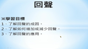 1.了解回聲的成因。rn2.了解如何增加或減少回聲。rn3.了解回聲的應用。