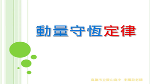 在科學上,我們學過許許多多的守恆定律,例如化學反應遵守質量守恆定律,摩擦生電的過程中,兩個互相摩擦的物體總電荷量守恆,還有國中時所學的力學能守恆定律等等.rn守恆定律告訴我們,在某些特定的條件之下,整個被討論的系統,某些物理量的總和是不隨時間而變的.這一堂課所要討論的動量守恆定律也是類似的,在特定條件之下,整個系統的總動量將不隨時間而變.rn