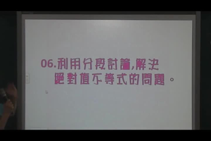 介紹絕對值不等式的問題,同學要弄清楚絕對值方程式、絕對值不等式與絕對值函數,這三個最難的是絕對值不等式,我們看到絕對值,一定不要忘了分段討論。