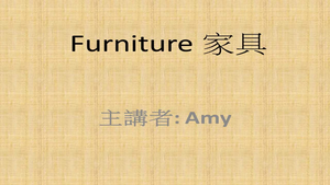 本課程主題是家具單字的介紹,其學習目標為1.能正確認讀家具的單字。2.能正確拼寫出家具的單字。3.能正確說出家具的單字。4.能聽懂家具的單字。rn