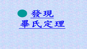 主題1 發現畢氏定理rn介紹直角三角形,並由拼圖及面積的計算導出畢氏定理。rn主題2 畢氏定理的應用rn1. 應用畢氏定理,計算直角三角形中的邊長。rn2. 應用畢氏定理,在數線上標出平方根的點。