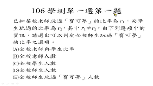 各位同學大家好,今天我們要看 106 學測單選題第一題