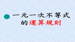 內容說明:rnrn1.推導不等式加法和乘法運算規則rn2.利用不等式的等量公理推導出移項法則來解一元一次不等式rn3.不等式及兩個不等式的求解法,並圖示其解rn4.與一元一次不等式有關的生活情境題