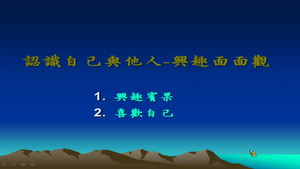 1.透過活動引導情境、閱讀理解、討論和發表分享的方式,從學校生活的經驗引導學生有正確的自我形象與人我互動的價值觀。rn2.引導學生體認人我互動的方式並理解融入群體的技巧。rn3.幫助學生能接納自己的個性、興趣與在群體中彼此接納。rn