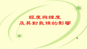 1.認識經度與緯度rn2.認識台灣的經緯度rn3.了解緯度對氣候的影響