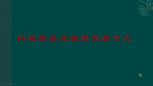 本單元旨在探討科技發展所面臨的以下危機:1.生態危機、2.食品與傳染病危機、3.倫理危機、4.核能危機rn,並希望能了解面對科技發展危機的因應方式。