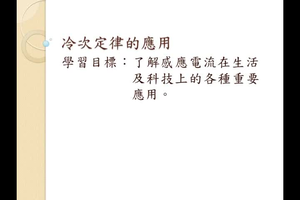 冷次定律的應用rn緊接前段冷次定律的介紹影片,透過四種生活中可見的電器產品,分別說明發電機、電磁爐、電磁煞車及超導磁浮等運作機制與原理,使學生能夠將科學原理與生活周遭的設施產生連結,了解科學研究對生活的助益。rn