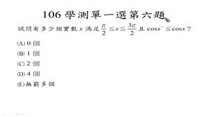 各位同學大家好,今天我們要看 106 學測單選題第六題