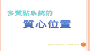 質心運動觀念的討論,對於物理問題的簡化很重要,以下我們從質心位置開始討論起,接著討論質心速度與質心加速度