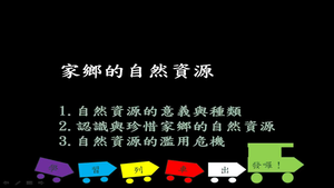 1. 瞭解自然資源的意義與種類。rn2. 認識與珍惜家鄉的自然資源。rn3. 自然資源的濫用危機 rn