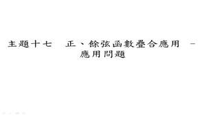 各位同學大家好,今天我們要介紹的是下一個主題,正、餘弦函數疊合應用 – 應用問題。學習完正、餘弦疊合完後,接下來我們來看應用問題。