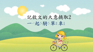 運用「一起騎單車」這個文本,讓讀者嘗試使用六何法自我提問,學會把多段落的自然段可以統整成為意思表達完整的意義段,分段重述故事重點,進而能將記敘文的大意摘要出來。rn 當我們在進行閱讀活動時,我們可以學習一些方法來幫助我們理解故事的內容。這些方法包括自我提問,也就是自己問自己關於故事中「有誰?」、「發生什麼事?」、「在什麼時間?」、「在什麼地點?」這樣的問題,然後自己試著找出答案來回答。rn 再來是可以試著問出有「如何」及「為何」的問題。這6種問題就是我們所說的「六何法」。rn 有些文本比較簡短,一個自然段可以成為一個意思表達完整的意義段,有些文本分成多個自然段,就要結合幾個自然段才能將意思表達完整,成為意義段。在讓學生討論時,可以聚焦提問:哪些段落在說同一件事?請把它們找出來,並寫一寫這幾段在說哪一件事?rn 引導學生注意故事細節,練習重述故事重點。最後能用精簡的語句,將記敘文的大意摘要出來。