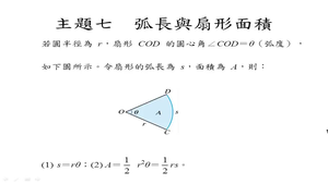 各位同學大家好,今天我們要介紹的是下一個主題。弧長與扇形面積。以往我們也會計算圓形弧長與面積。現在我們已經學習過弧度,將透過弧度的表示,來計算弧長與圓積。