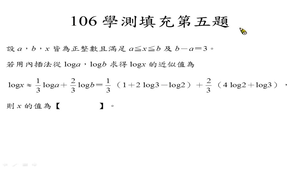 各位同學大家好,今天我們要看 106 學測填充題第五題