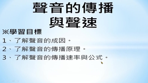 1.了解聲音的成因。rn2.了解聲音的傳播原理。rn3.了解聲音的傳播速率與公式。