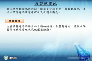 藉由仿間乾電池的拆解,讓學生發揮創意,自製乾電池,並重中學習電池放電原理及氧化還原觀念。