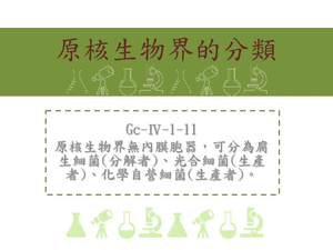 原核生物界無內膜胞器,可分為腐生細菌[分解者]、光合細菌[生產者]、化學自營細菌[生產者]