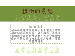 植物的感應可分為與生素素濃度分布不均有關的向性生長,以及與水分快速進出細胞有關的膨壓運動。另部分植物會受到季節的變化而產生葉片變黃、落葉、開花等現象