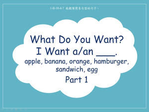 食物-What do you want? I want a/an apple/banana/orange/hamburger/sandwich/egg .