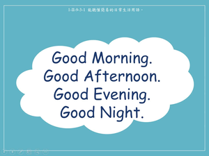 問候-Good morning. Good afternoon. Good evening. Good night.