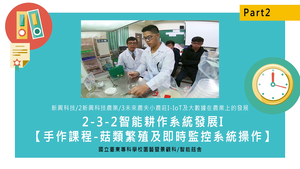 「未來農夫的小農莊」的創想,希望利用初期模式場域-智能溫室的建置,讓全國高中職以下的師長、同學及普羅大眾了解未來農業生產的預期模式,以「物聯網」搭配「AI智能」的經營概念,利用Arduino、Python或Julia等「程式語言」寫入,將「環控及生物感測器」、「智能機械」或「無人機」等進行整合,進而將監控數據彙集,並預期利用這些巨量資料,經過雲端運算後,讓智能機械可以在模式空間中有效判斷並執行工作,達到「精準農業」的理念。智能菇舍的教育目標包括(1)智能農業是未來生產趨勢、(2)發展智能農業可應用的種類及範圍。因此,在課程中會以客製化菇舍智能模組進行觀摩學習,讓同學了解,為了規模化生產具「高經濟價值作物」,可利用作物生長及栽培管理的特性,進行客製化規劃,將需求的環境設施、感測元件、物聯模組等,包含溫溼度感測器、氣體感測器、即時辨識監測器及4G IOT訊號閘道器,利用客製化監控軟體,進行SCADA (supervisory control and data acquisition )資訊收集及數據分析,可利用分析資料的判讀,達到互動式監控管理。
