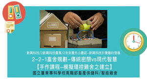 禽流感是令人聞風喪膽的傳染病,然而你知道嗎,這跟你我的生活飲食息息相關!炸雞、烤雞、布丁、蛋糕…許多美味的雞隻加工食品都是從雞場來的,有好的原料、管理才能有健康安心的產品。本次課程介紹了不同雞舍的飼養方式,並配合「新農業」,將密閉環控水簾式雞舍做了簡單的介紹,想想看如果你是智慧小農夫,你會怎麼養雞呢?現在就讓我們一起進入未來農夫小農莊,探索新興科技的奧妙吧!