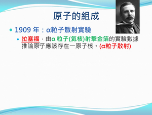 介紹拉塞福利用α粒子散射實驗發現原子核及質子的推論過程