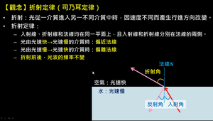 介紹折射定律,並定義折射率