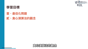 本影片提供了加深加廣課程影片_進階程式設計-貪心演算法。
