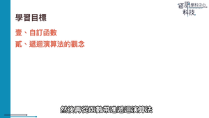 本影片提供了加深加廣課程影片_進階程式設計-遞迴。