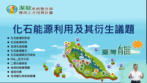 臺灣能源通識為一系列影片課程,其內容包含了全球能源發展歷史、化石能源利用及其衍生議題、全球能源利用發展趨勢、臺灣能源利用發展趨勢、化石能源利用概述、再生能源利用概述、儲能與系統整合等七段影片,各影片可以單獨學習,也可進行一貫式的學習。提供給致力於能源教育的各位來使用。