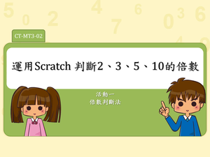 本教材由教育部委辦計畫「運算思維教材開發計畫-數學領域」開發,課程內容主要為五年級數學-因數與倍數單元概念為主,影片內容主要引導教師使⽤Scratch融入數學教材之使⽤⽅法,可搭配教育⼤市集課程包使⽤。