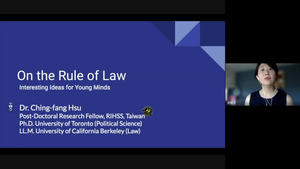 The second film tells about Rule of Law by Post-Doctoral Research fellow Ching-fang Hsu from Research Institute of Humanities and Social Sciences, Minister of Technology.Please feel free to enjoy this online lecture.