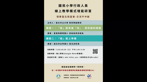 課程內容:這次國小行政人員線上研習由黃玉貞校長、曾柏瑜資訊組長擔任講師,協同主持人劉遠楨教授開場引言。首先由曾柏瑜資訊組長分享他們是如何在疫情期間實施遠距教學,事前的演練包括確認視訊軟體,家長單一窗口、學生單一窗口及老師行政作業e化,但疫情突然發生,線上學習倉促上線,這才發現之前演練的不足之處,為此他們努力的填補疏漏,試圖給學生、家長及老師最完善的線上教學模式。黃玉貞校長則講述為了因應線上教學的趨勢,教師所要做的適應與調整。