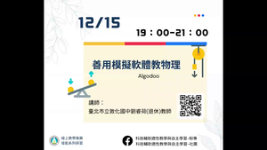 課程內容:本場次線上教學教師增能課程邀請到臺北市立敦化國中劉睿荷(退休)教師擔任講師,主要是分享適用於國中物理課程的虛擬軟體Algodoo,利用虛擬軟體可以讓學生更明白物理現象的原理,還可以培養繪圖能力,分析數據關係以培養探究基本能力。講師一步驟一步驟的教學,讓與會教師了解虛擬軟體的基本操作方式,會後可以靠自己摸索出更多可以實際應用在課堂上的範例,研習時間緊湊,講師能分享的有限,在研習過後自己的練習與摸索才是真正的開端。