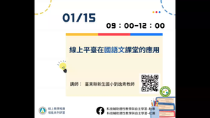 課程內容:本場次線上教學教師增能研習邀請到臺東縣新生國小劉逸青教師擔任講師,介紹線上平臺與平臺實際運用時機,其中又著重分享線上自主學習平台因材網的運用,實際示範國語文課程可以如何運用因材網來達到線上教學以及課堂補充,甚至可以利用線上影片讓學生課前預習跟課後複習,讓學習不在侷限於教室中。講師親切且專業的解說搭配上實際的線上操作,讓與會老師們都能輕鬆理解,不只學習到平臺的操作與應用,還感染了講師教學的熱忱與溫暖。