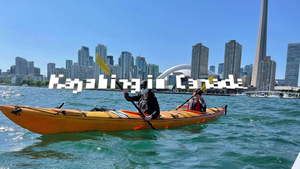 先介紹羅渣士中心(Rogers Centre)是一個體育館、也是美國職棒大聯盟隊伍多倫多藍鳥隊(Toronto Blue Jays)的主場球館,以及附近的加拿大國家電視塔(CN Tower)是世界最高的獨立式建築物;然後說明在開始划輕艇前要先穿著安全背心、拿划槳、坐到輕艇中才下水。